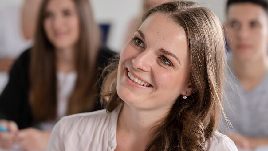 Kleine Studiengruppen und ein schulähnliches System garantieren eine sehr familiäre Atmosphäre. Unsere Studierenden sind keine anonyme Matrikelnummer, sie kennen und unterstützen sich gegenseitig.